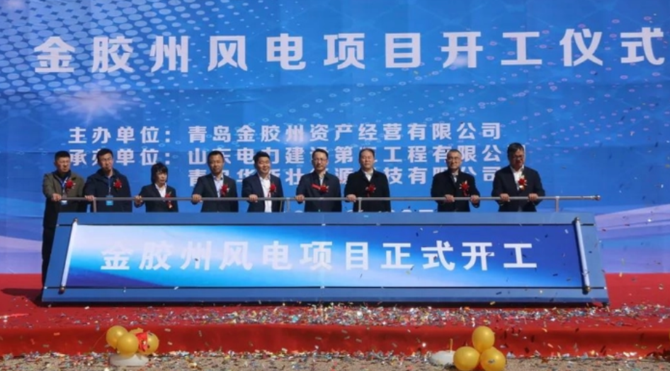 隨著臺上領(lǐng)導共同推桿,禮炮聲響起,鼓聲陣陣,金膠州風電場項目在這個陽光明媚的日子里正式開工啟動。